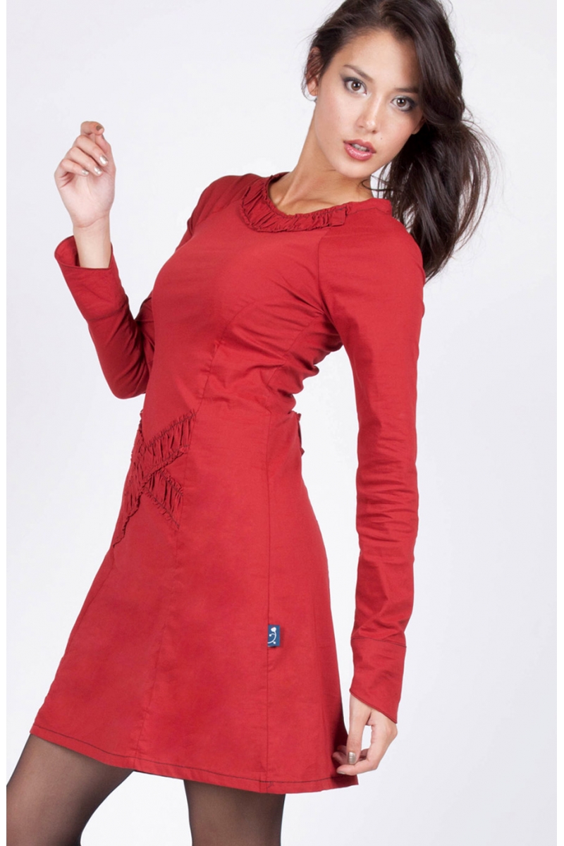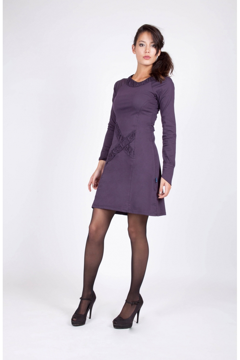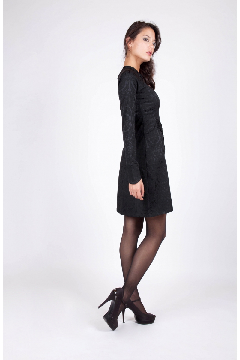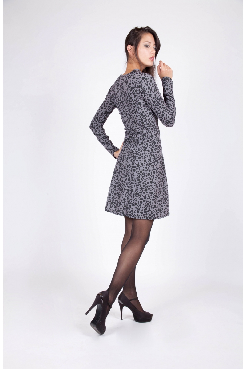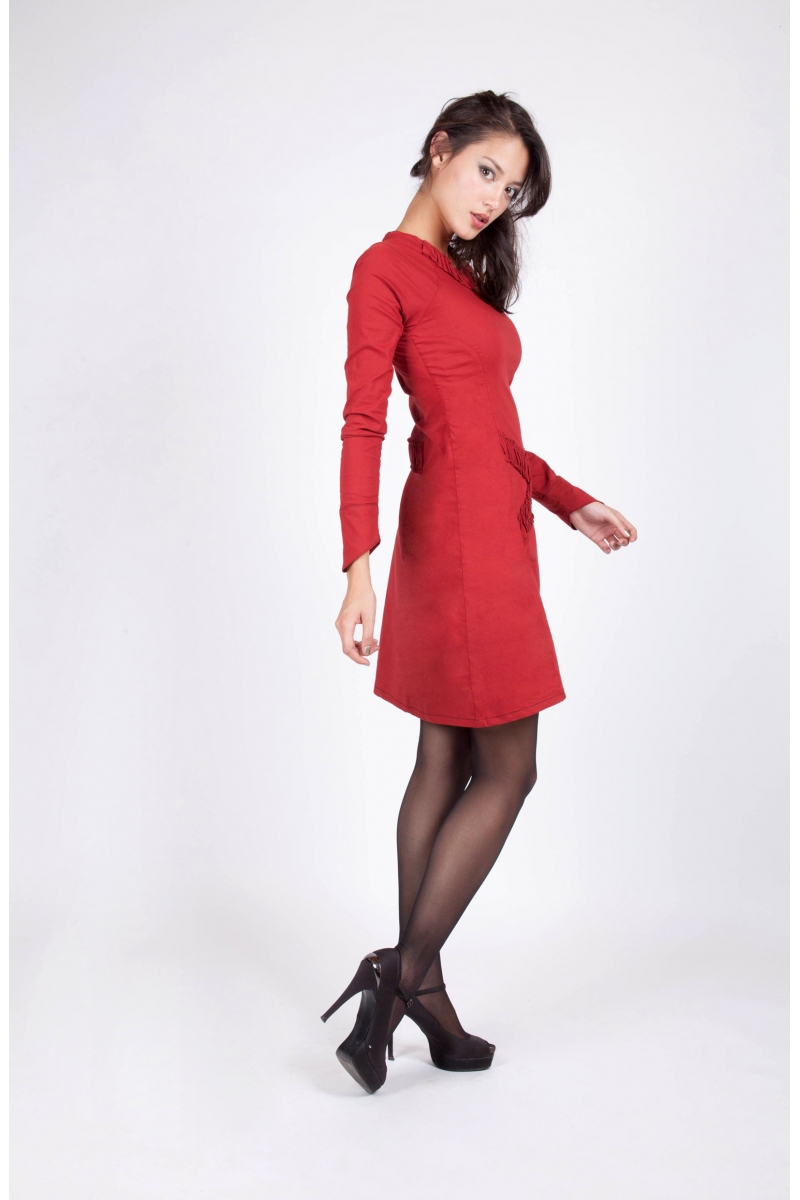 Des détails couture pour cette robe ultra féminine : poignets arrondis sur la main, tissu froncé pour marquer le col et la taille d’une ligne dans le dos et d’un croisé à l’avant.