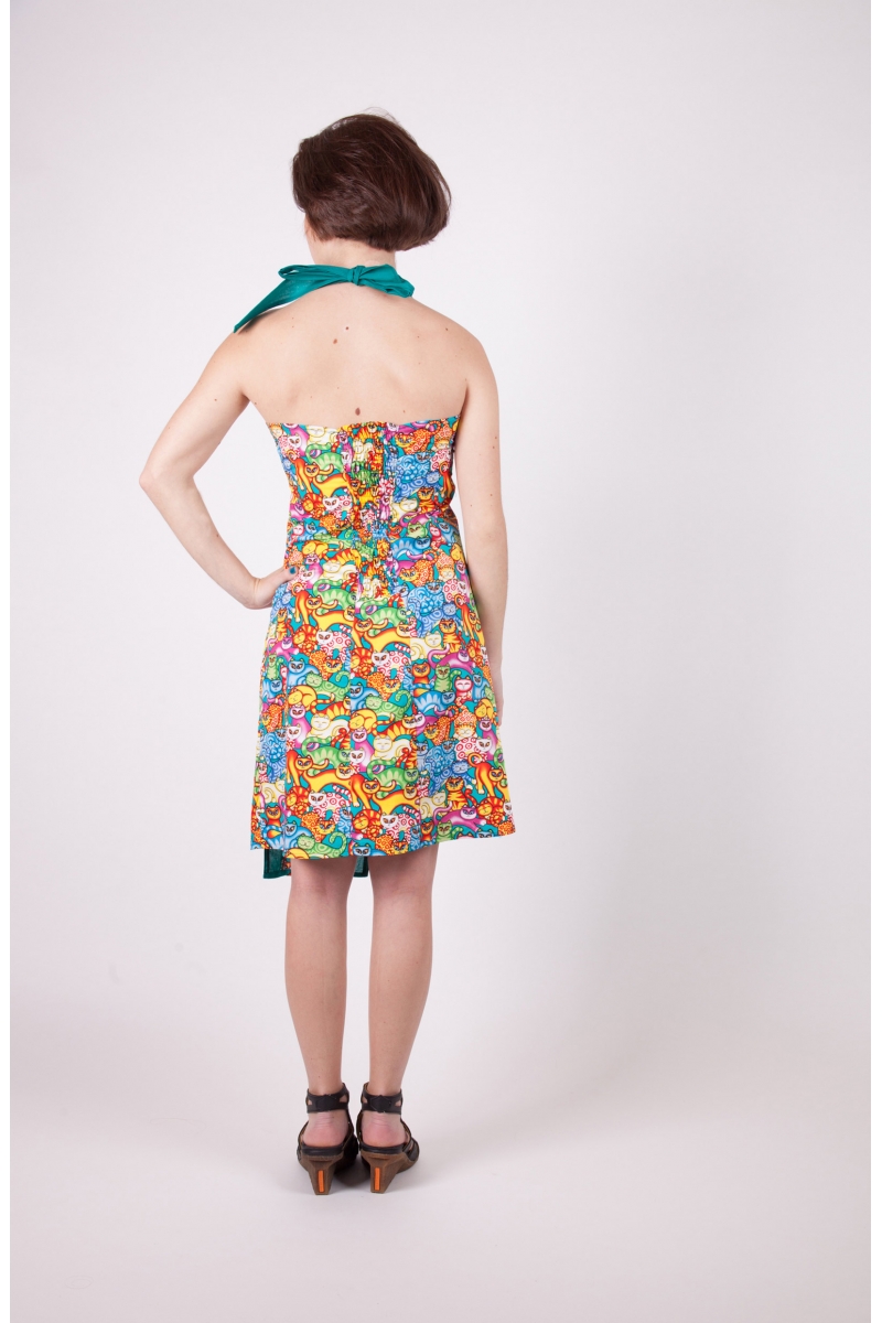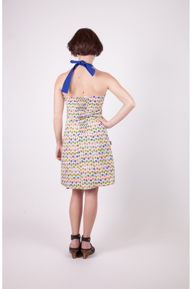 Coloris frais, motifs piquants et découpes asymétriques, c’est la petite robe de l’été ! Smockée dans le dos et nouée autour du cou, n’en doutez plus : elle est faite pour vous !