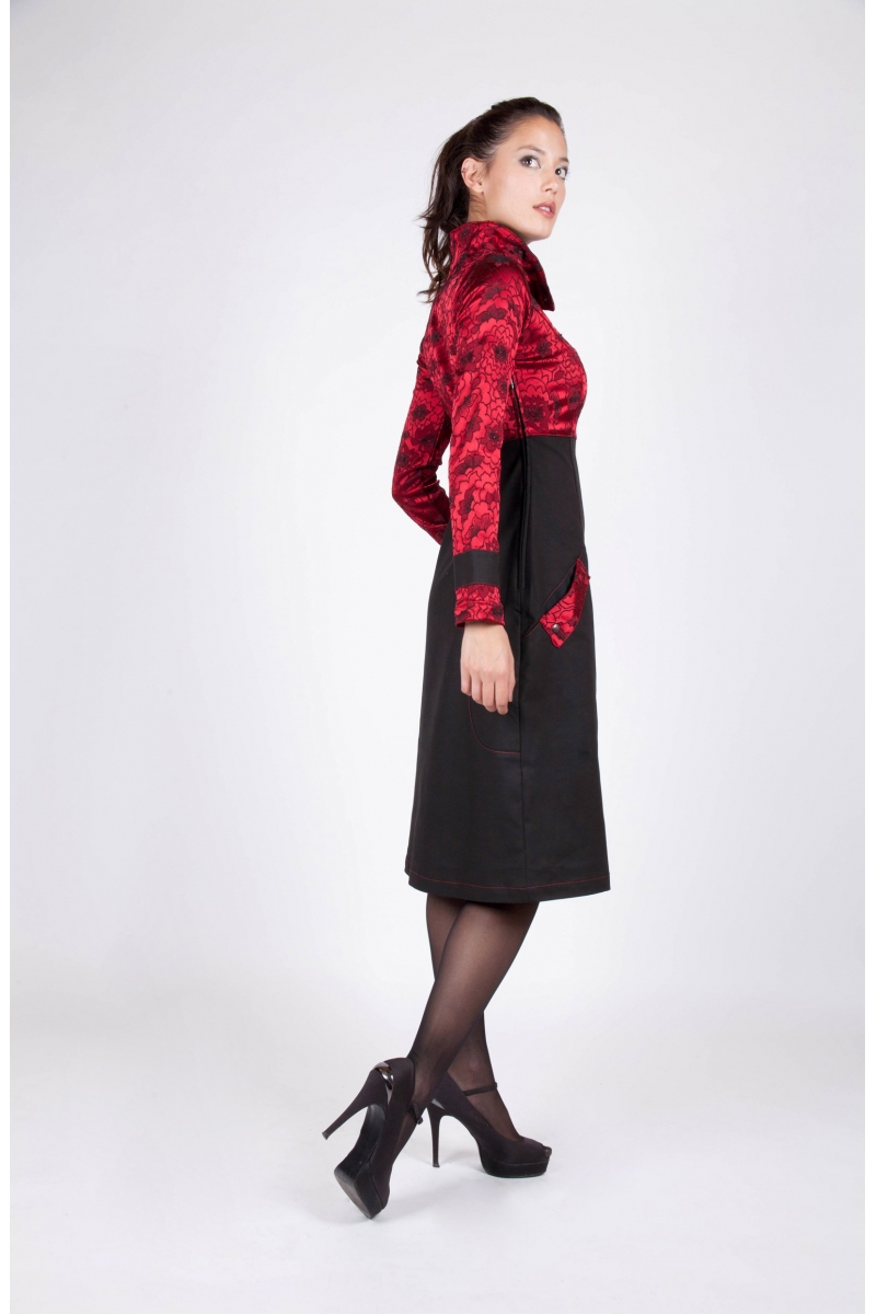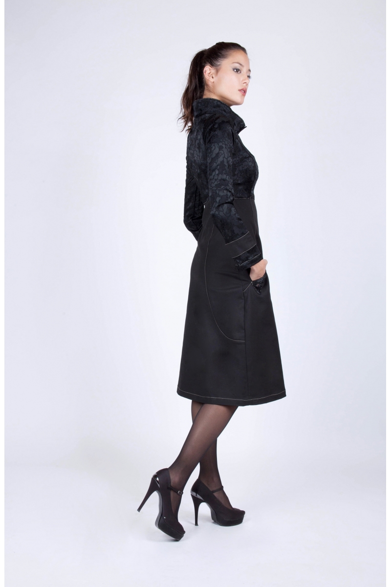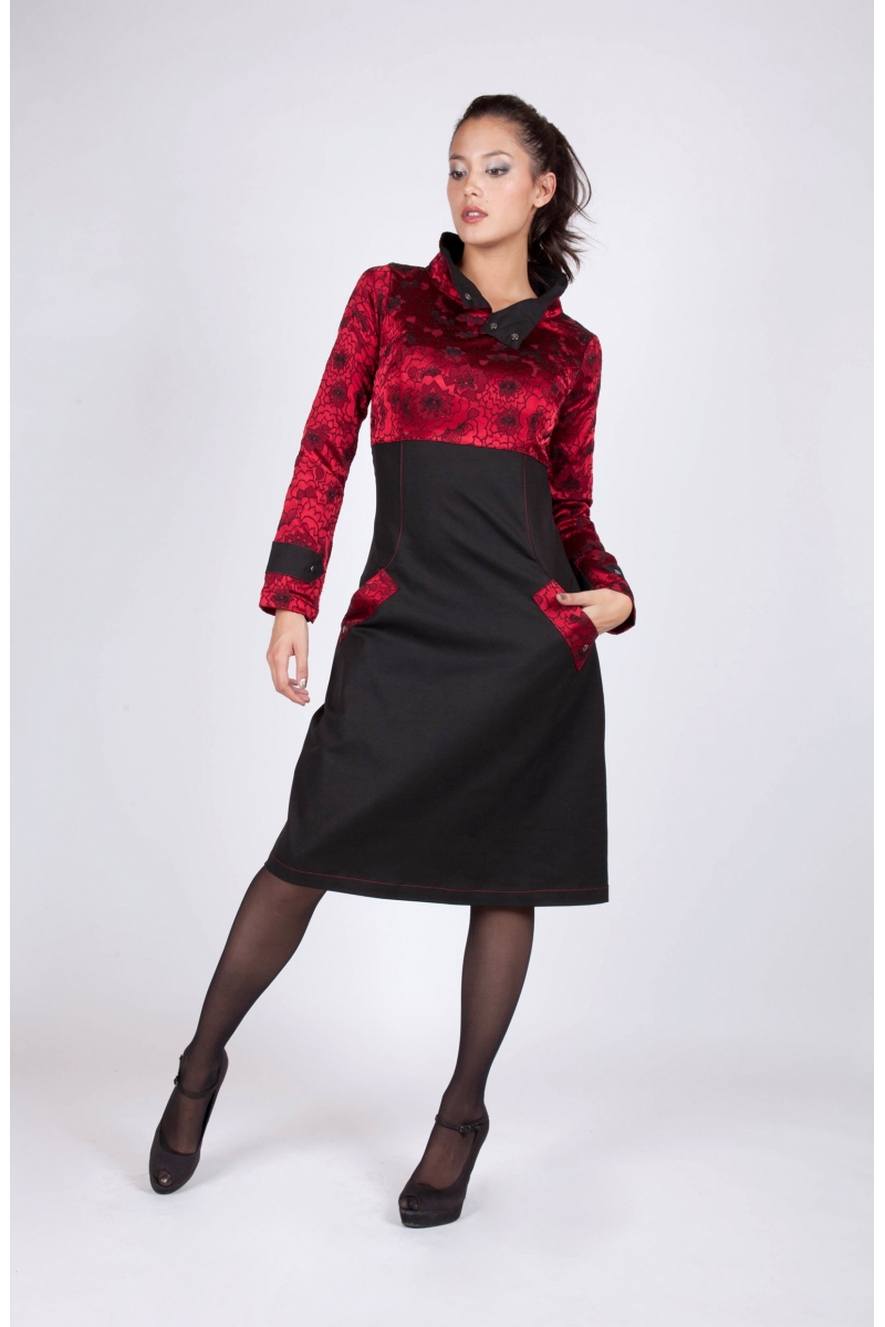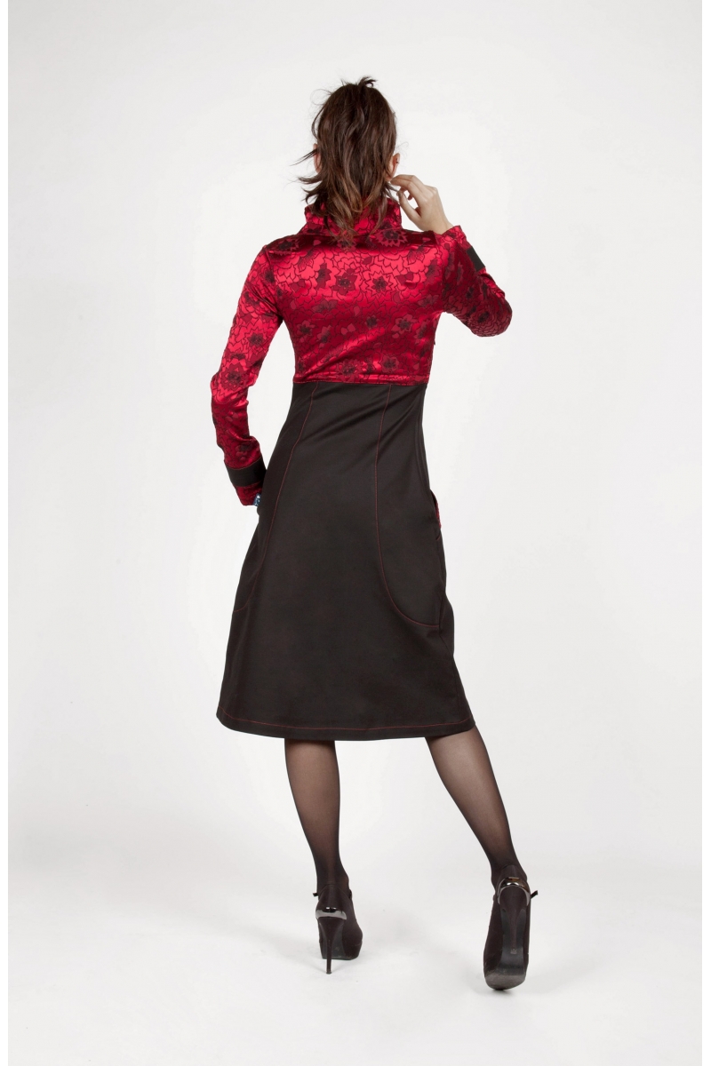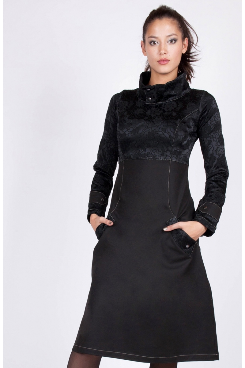 Col rabattable, détails aux poches et poignets : la robe Artia dessine une silhouette raffinée. Extensible et confortable, elle descend au genou pour mieux vous protéger des frimas !