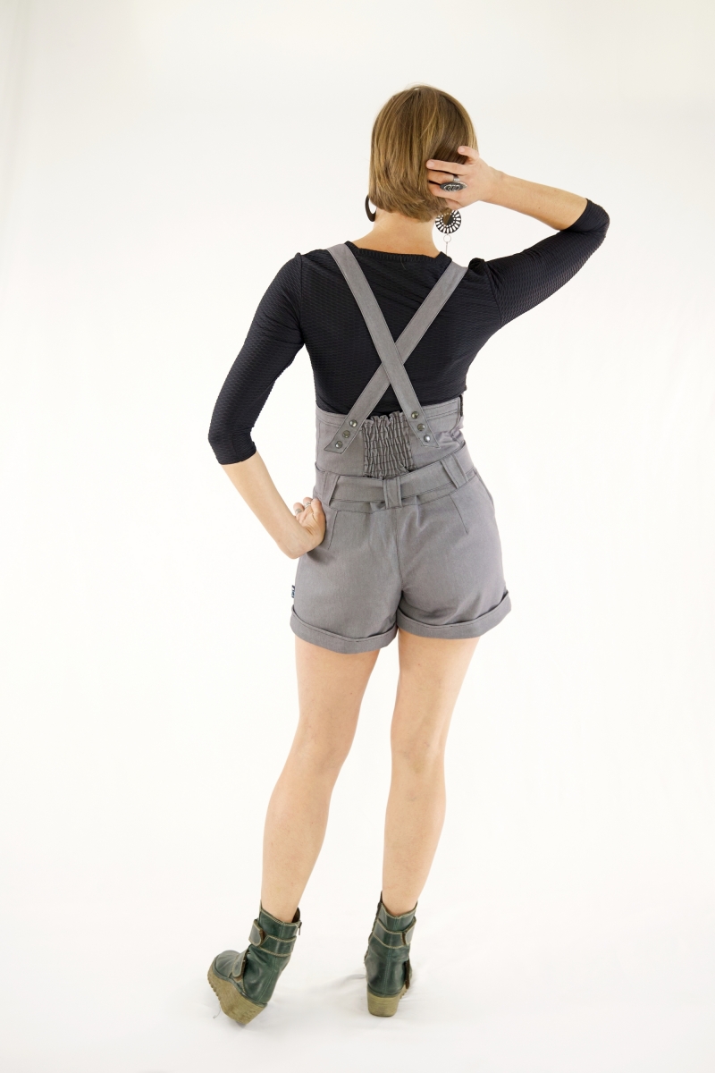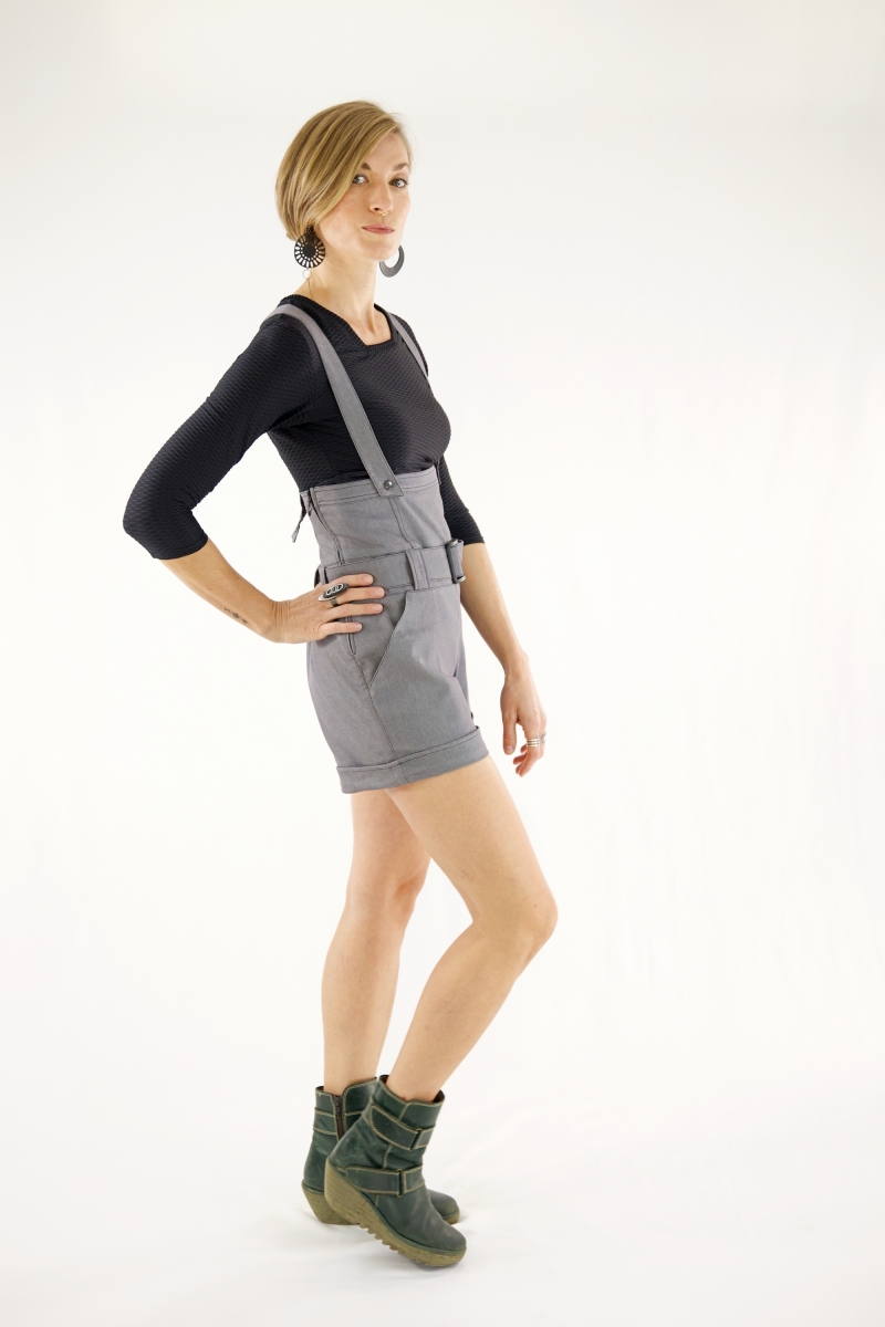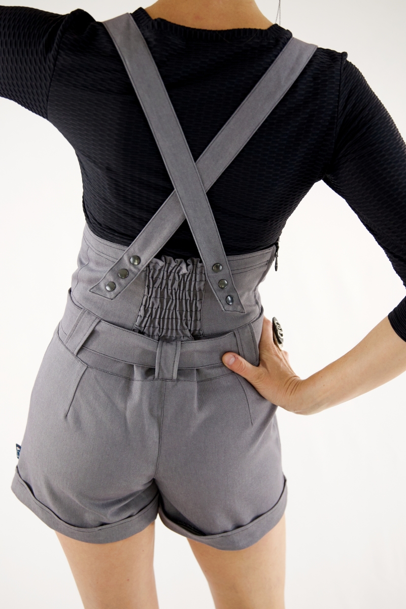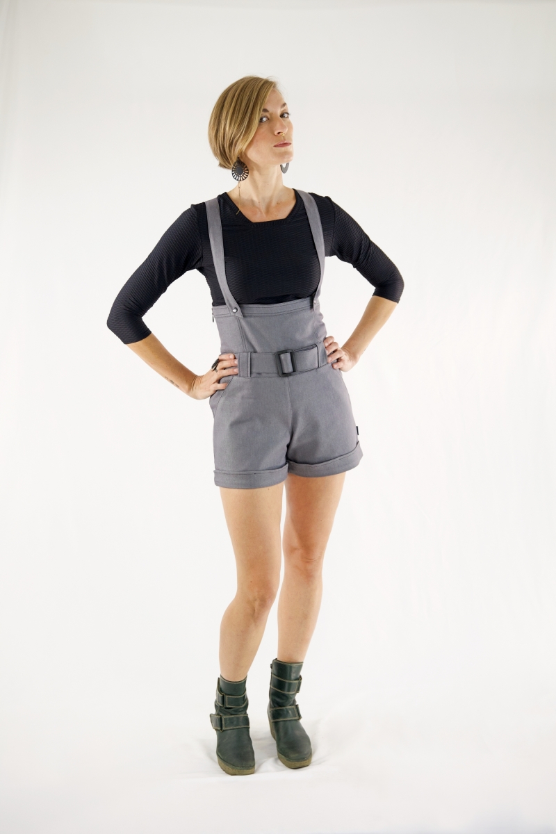 Osez le court avec cette salopette version shorty ! Bretelles, taille haute et large ceinture allongent la jambe : à porter sur des collants et des bottes, avec ou sans talons…