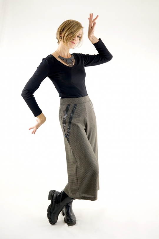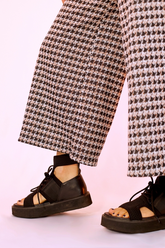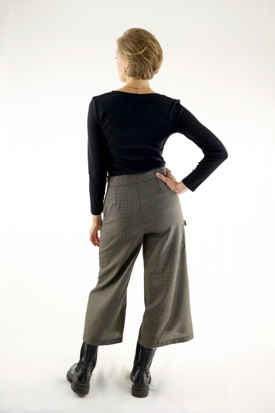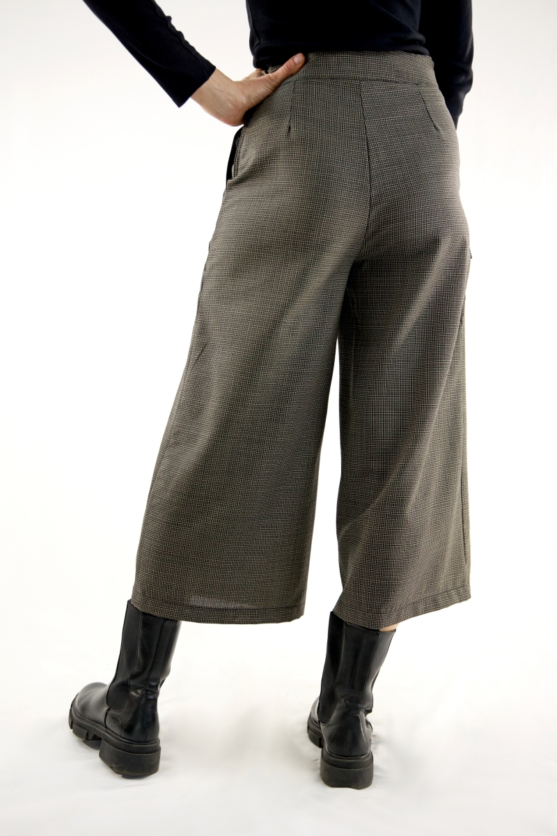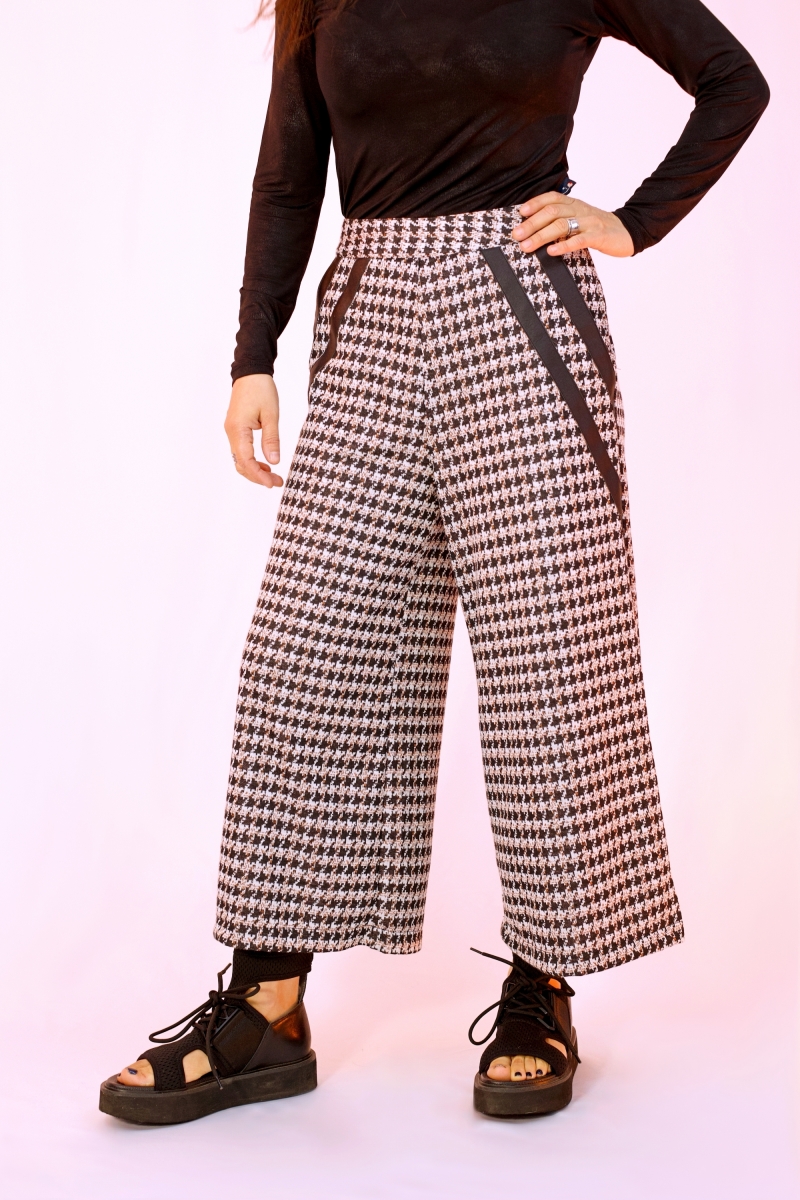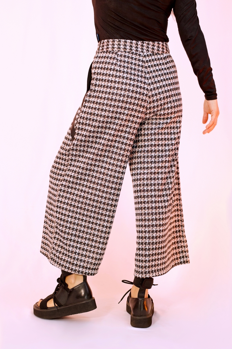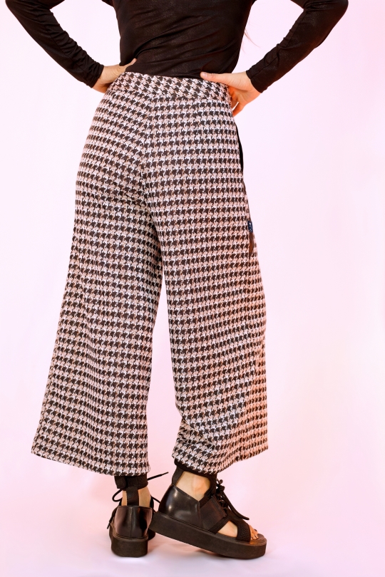 Avec sa coupe évasée et son imprimé pied de poule, le nouveau pantalon Chilia deviendra rapidement indispensable à votre dressing.