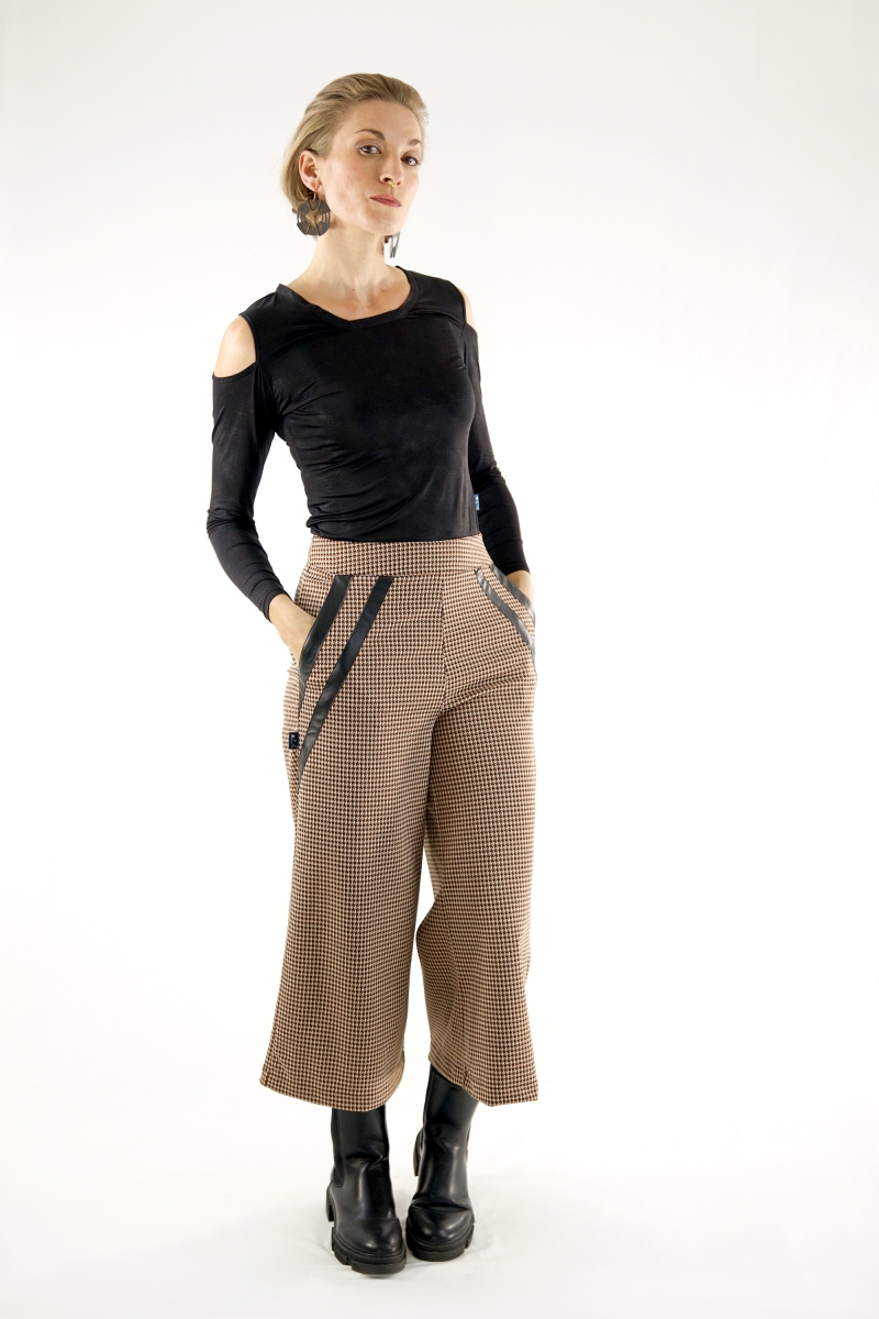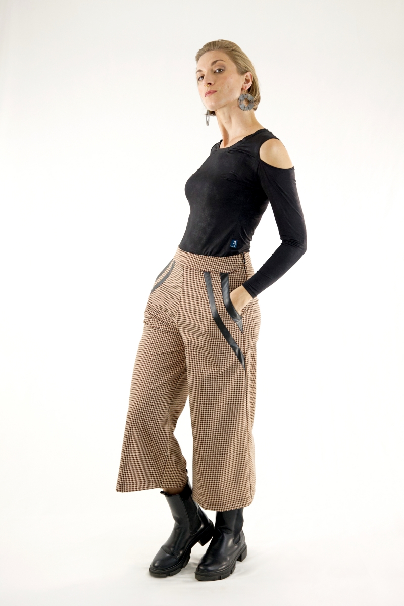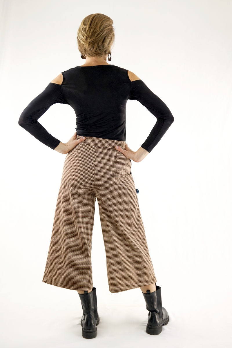 Avec sa coupe évasée et son imprimé pied de poule, le nouveau pantalon Chilia deviendra rapidement indispensable à votre dressing.
