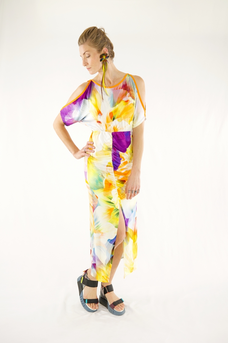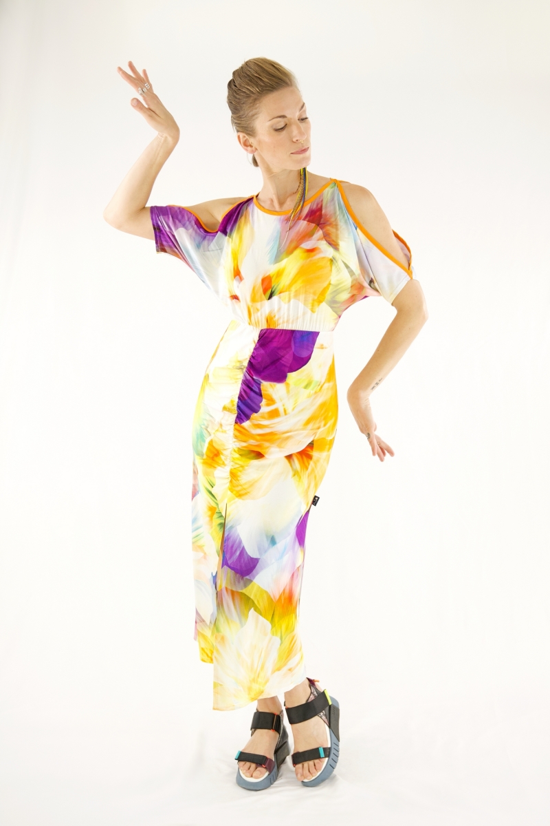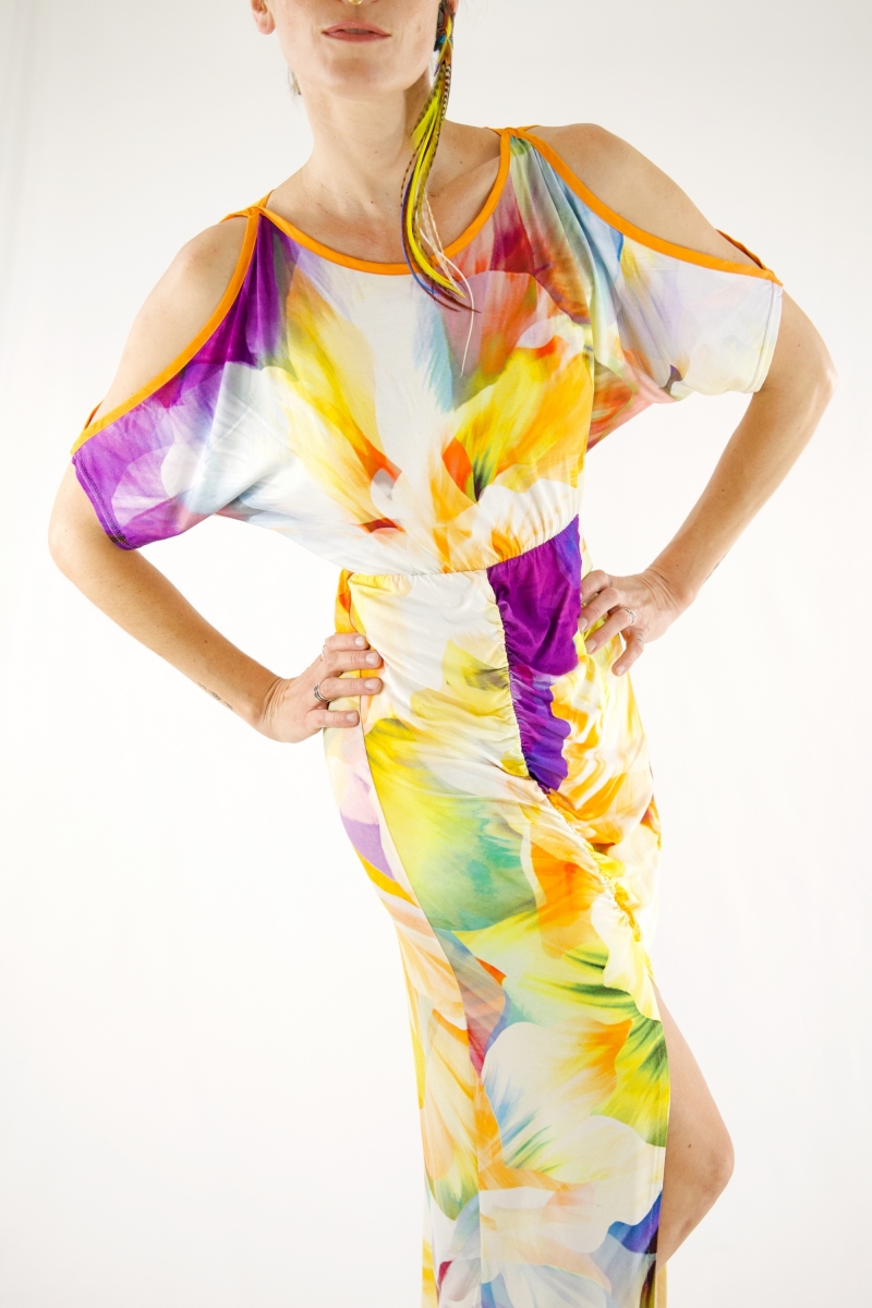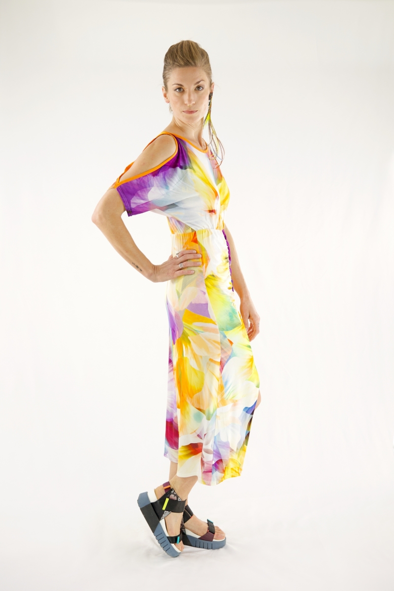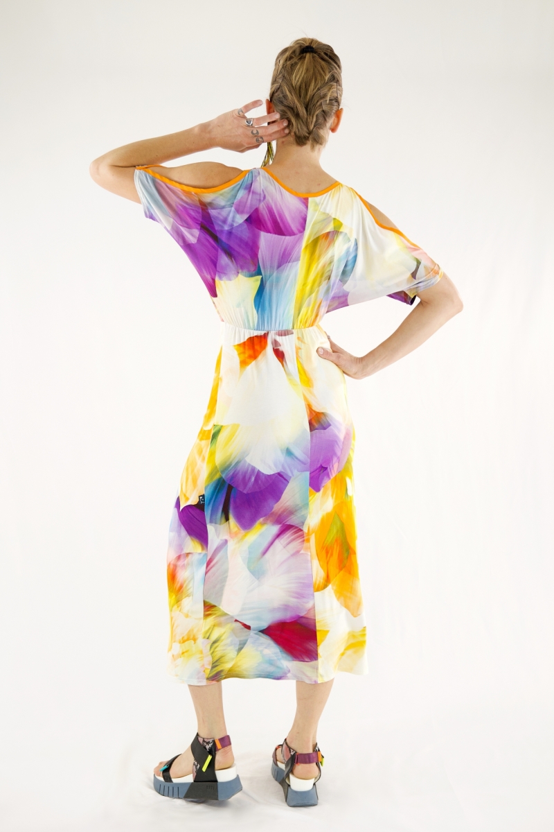 Ouverture sur les épaules, élastique au niveau de la taille et effet plissé au niveau du ventre.