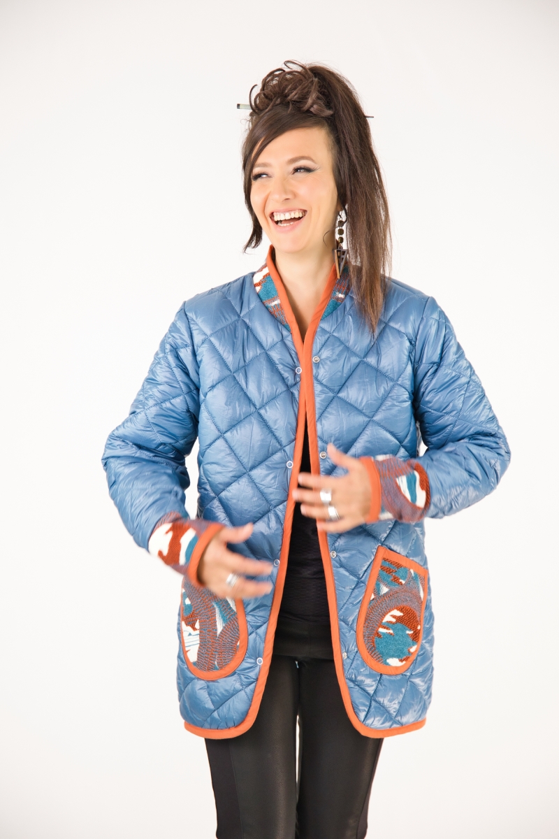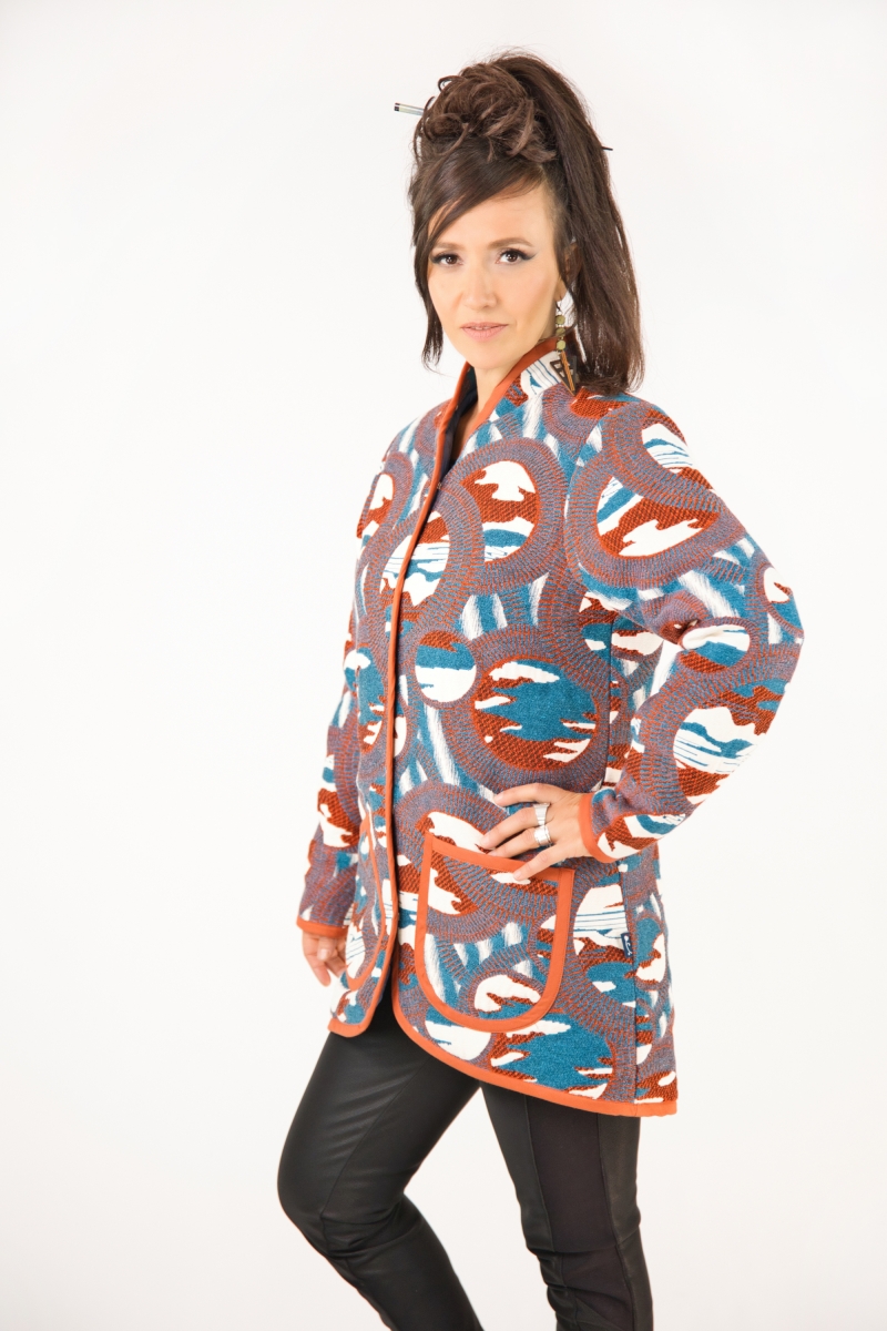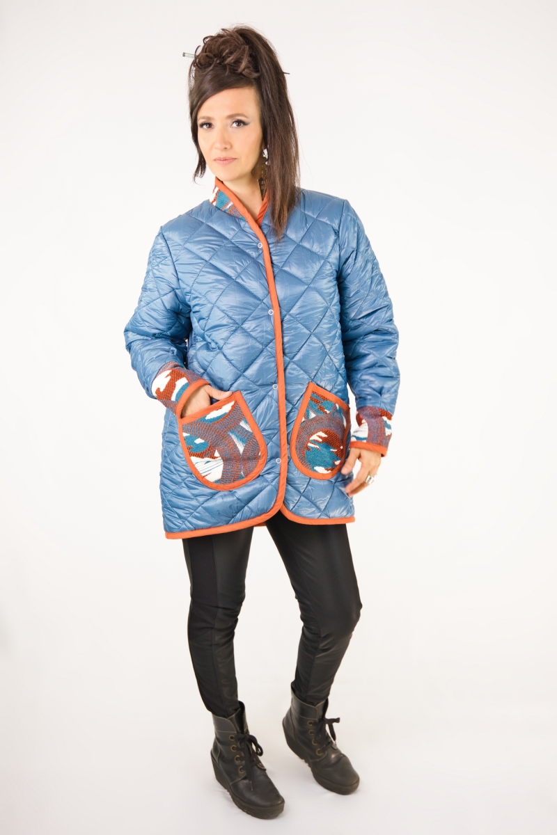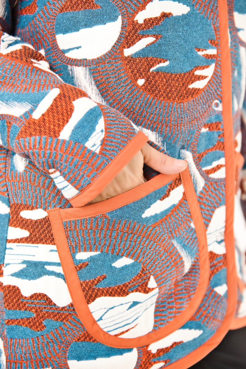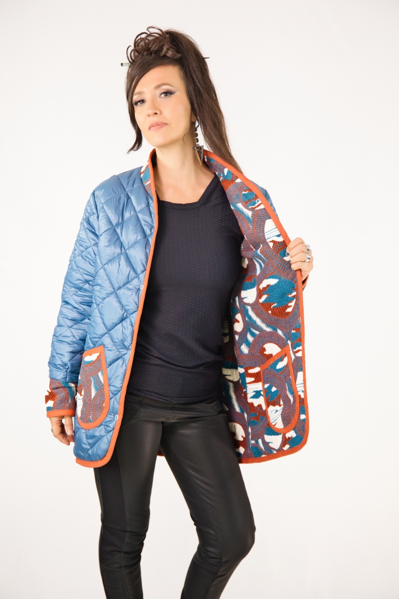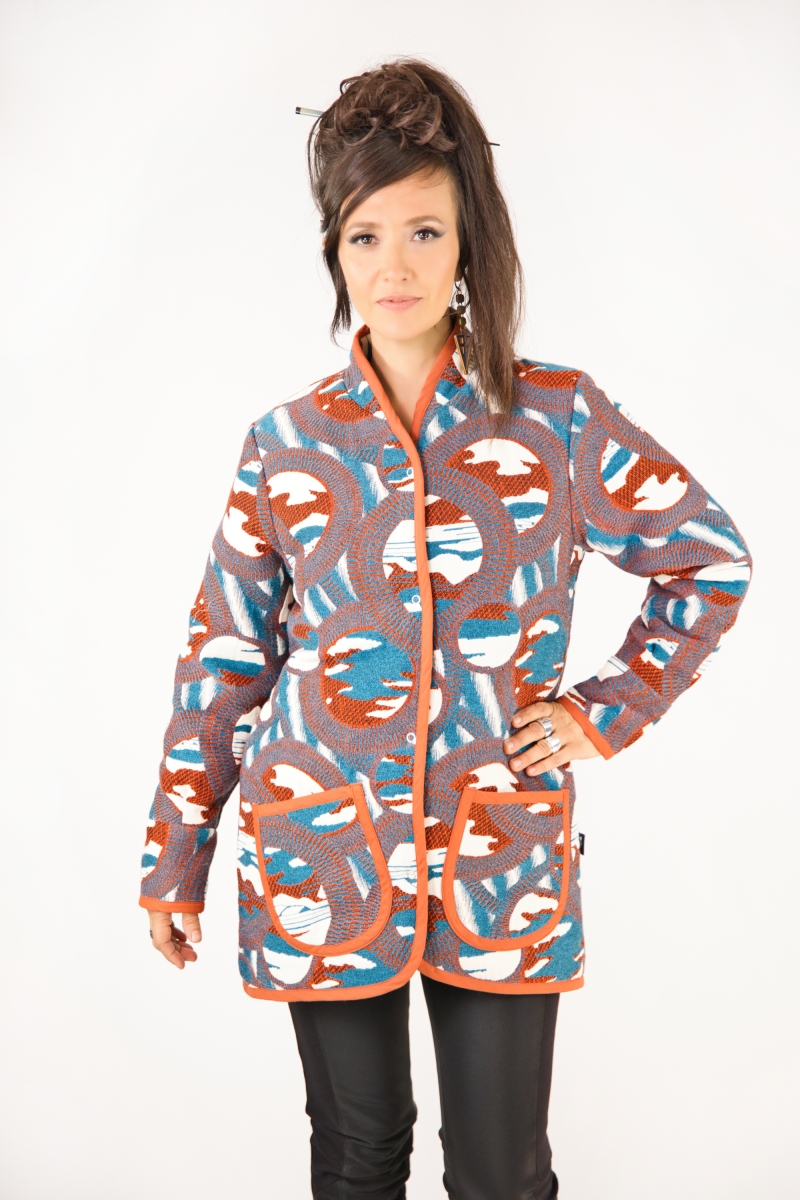 Ce Manteau d'inspiration kimono est idéal pour l'hiver: la créatrice l'a pensé suffisemment large et a choisi avec grand soin les motifs du tissu. ( Maison Deveaux )