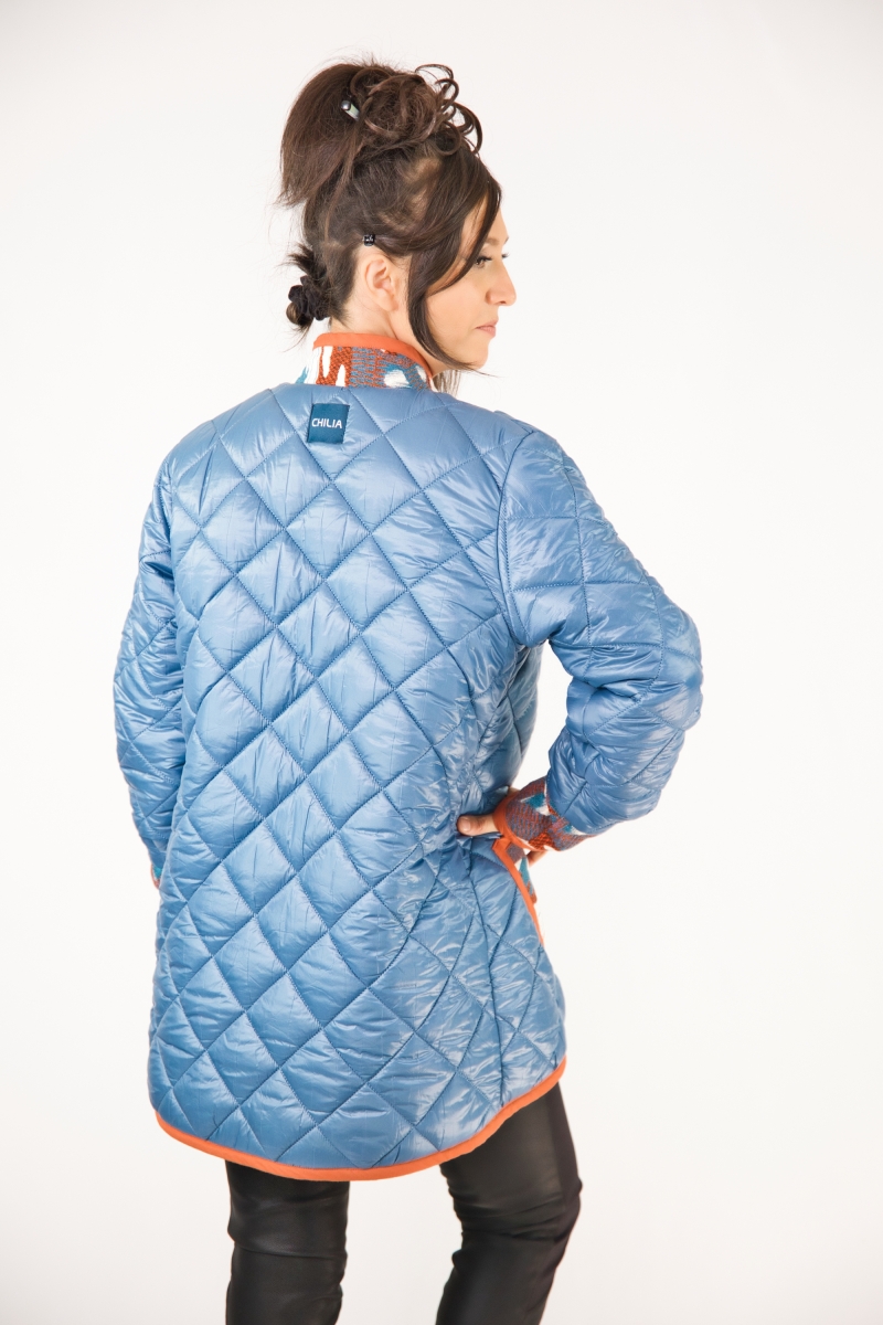Il est entièrement doublé d'une ouate, ce qui lui confère un coté douillet et cocooning et réversible, avec ses 2 poches de chaque coté!