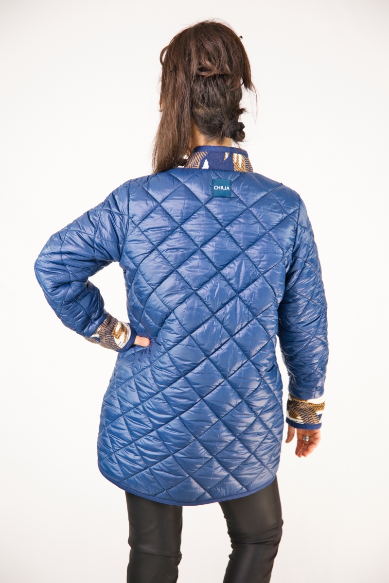 Il est entièrement doublé d'une ouate, ce qui lui confère un coté douillet et cocooning et réversible, avec ses 2 poches de chaque coté!