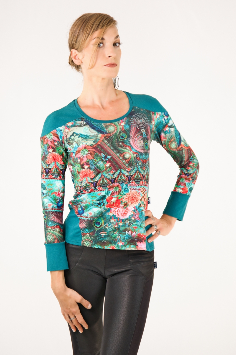 Un Top élégant et coloré pour ce haut Chilia avec ses motifs étonnant.