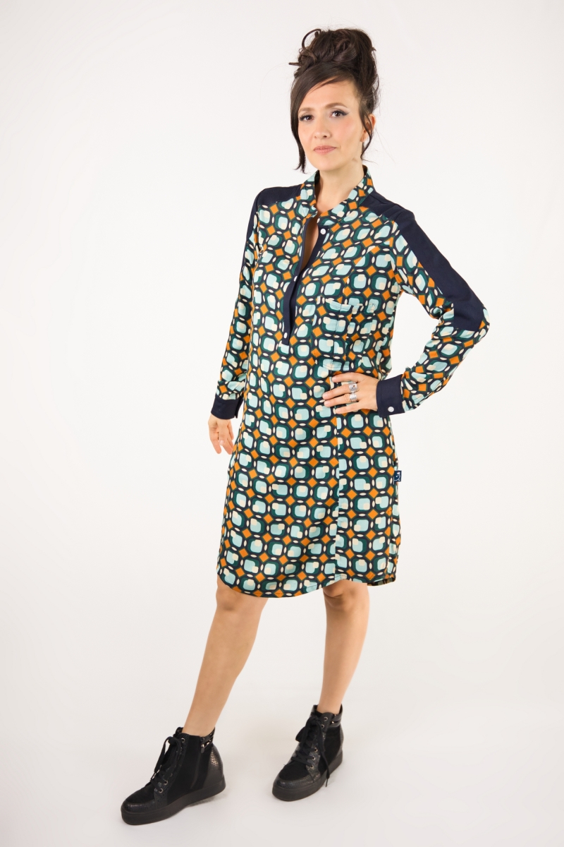 Cette robe-chemise, rétro et tendance à la fois est réalisée avec une viscose souple et fine pour un confort sans égal.