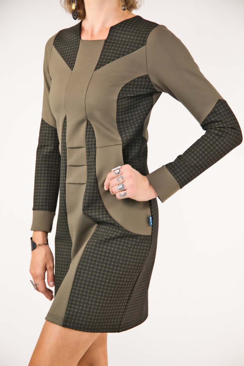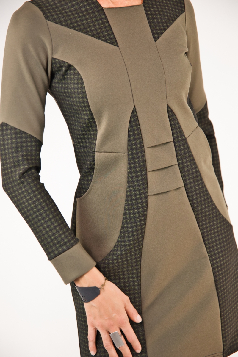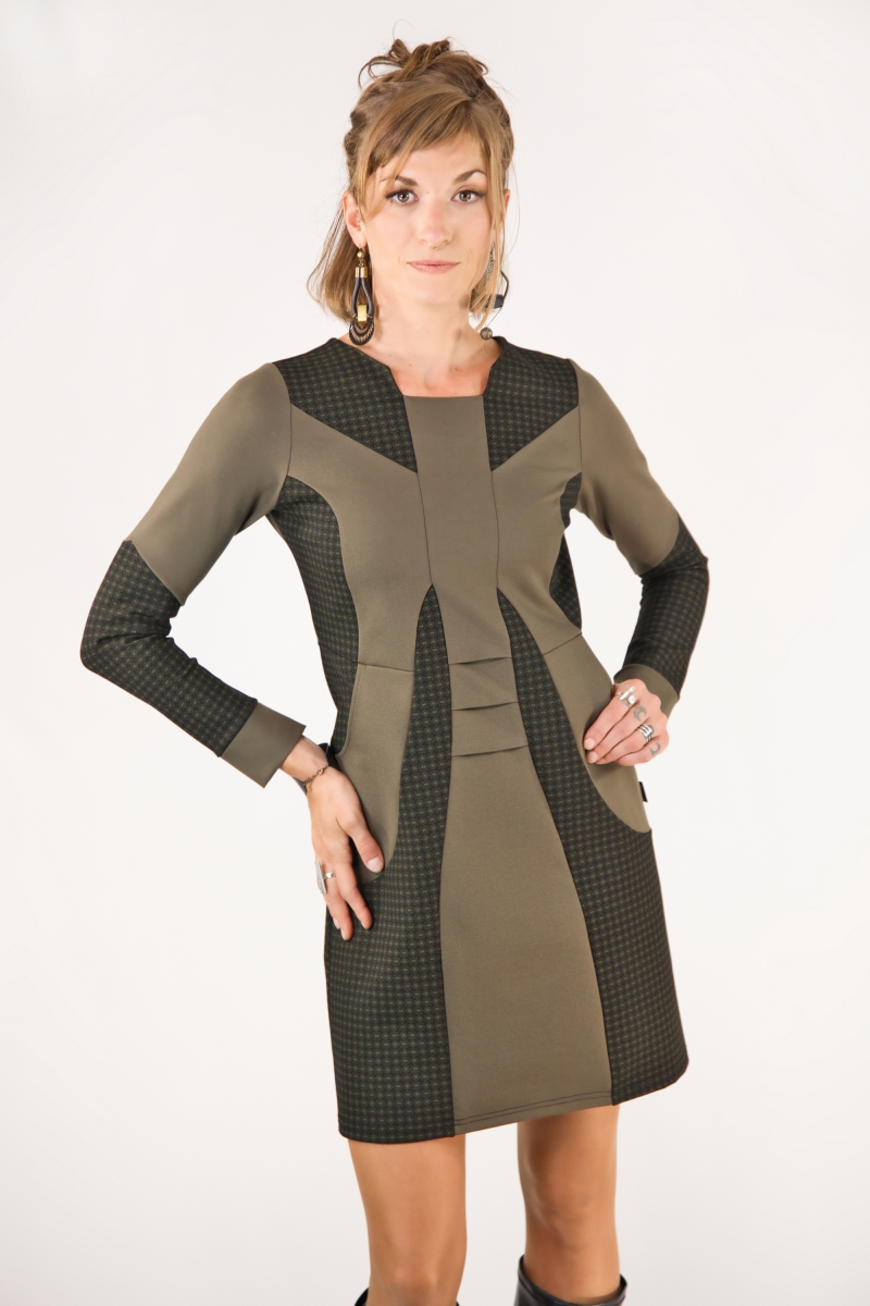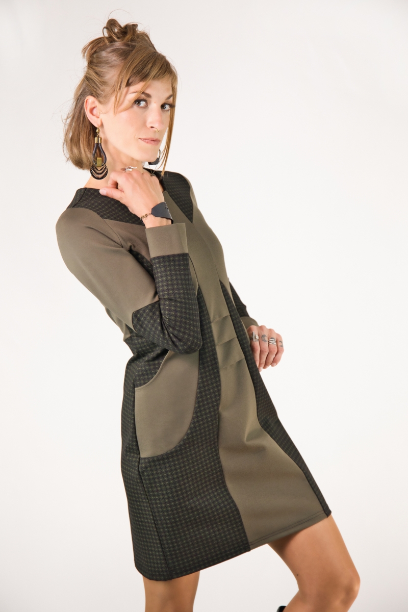 Chilia signe ici une robe graphique et sophistiquée, aux détails soignés jusque dans les plissés délicats du devant.