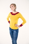 Les fronces délicates à l’avant offrent de l’aisance et une touche féminine, tandis que le jeu de trois couleurs crée un effet graphique minimaliste mais percutant.