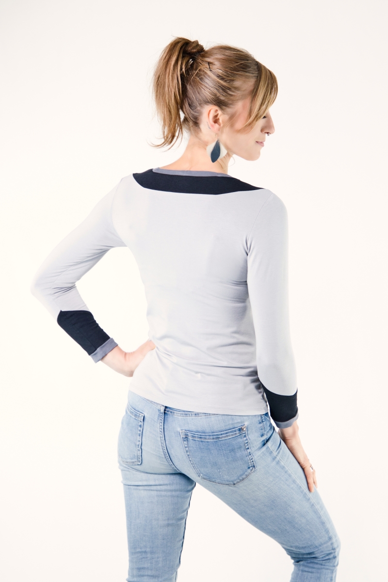 Les fronces délicates à l’avant offrent de l’aisance et une touche féminine, tandis que le jeu de trois couleurs crée un effet graphique minimaliste mais percutant.