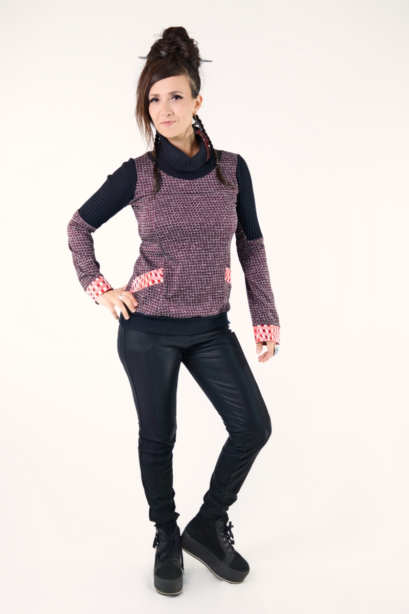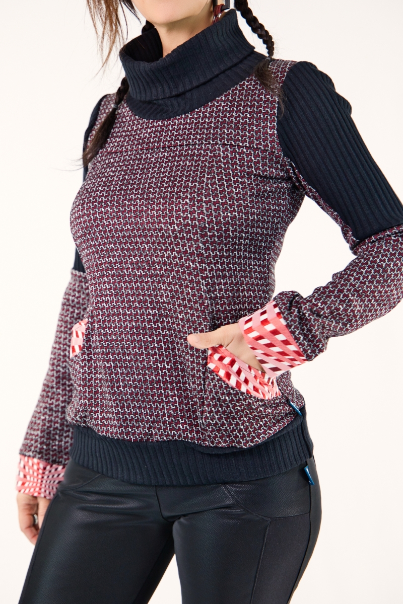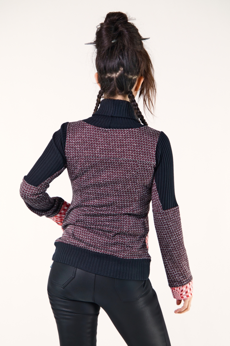 Son col roulé et sa coupe cintrée au dos dessinent une allure féminine, tandis que son effet légèrement boule sur le devant lui apporte une touche décontractée et contemporaine.