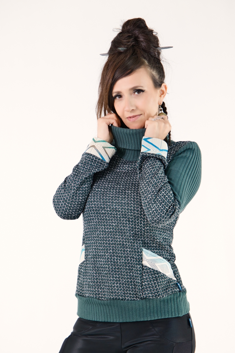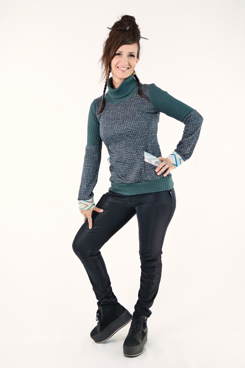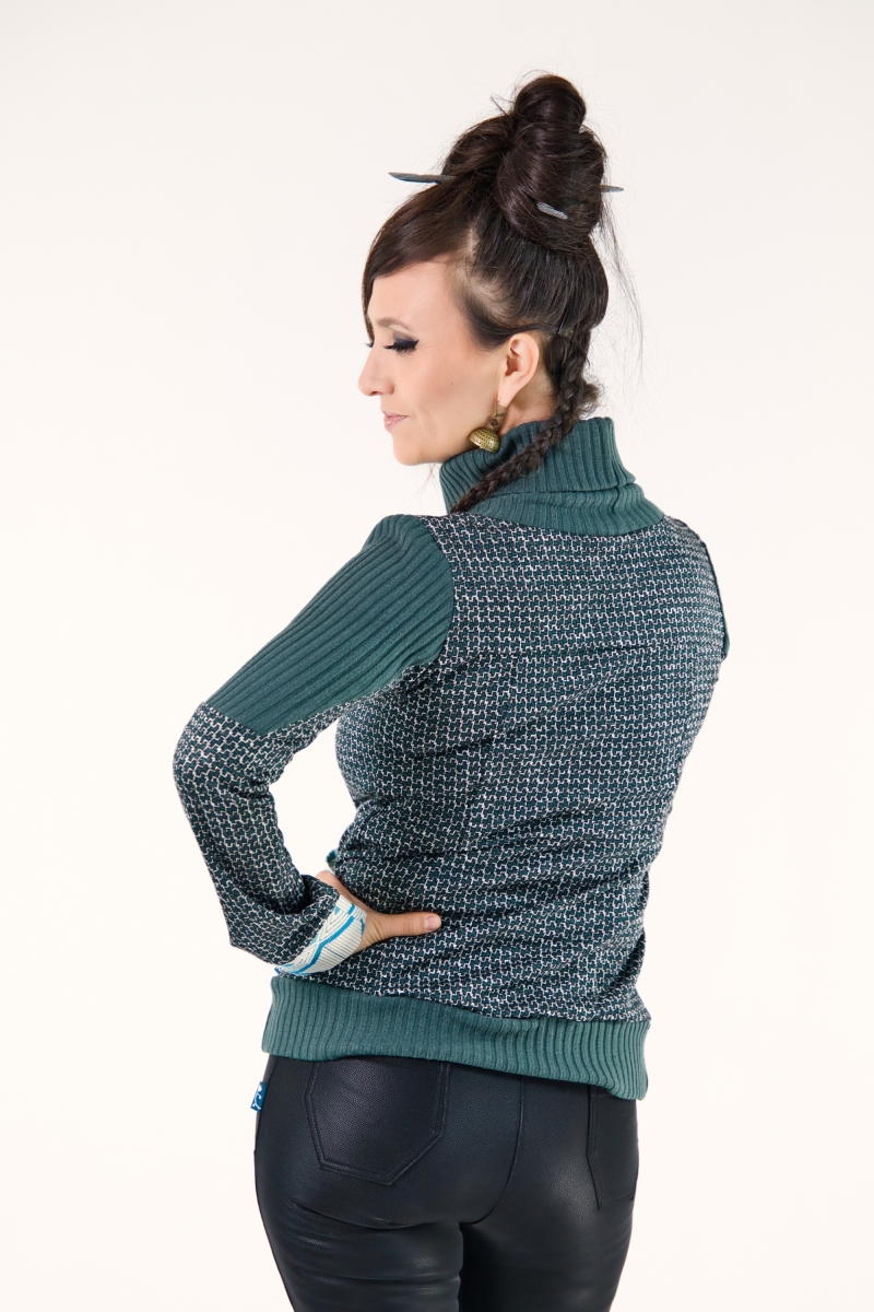 Son col roulé et sa coupe cintrée au dos dessinent une allure féminine, tandis que son effet légèrement boule sur le devant lui apporte une touche décontractée et contemporaine.