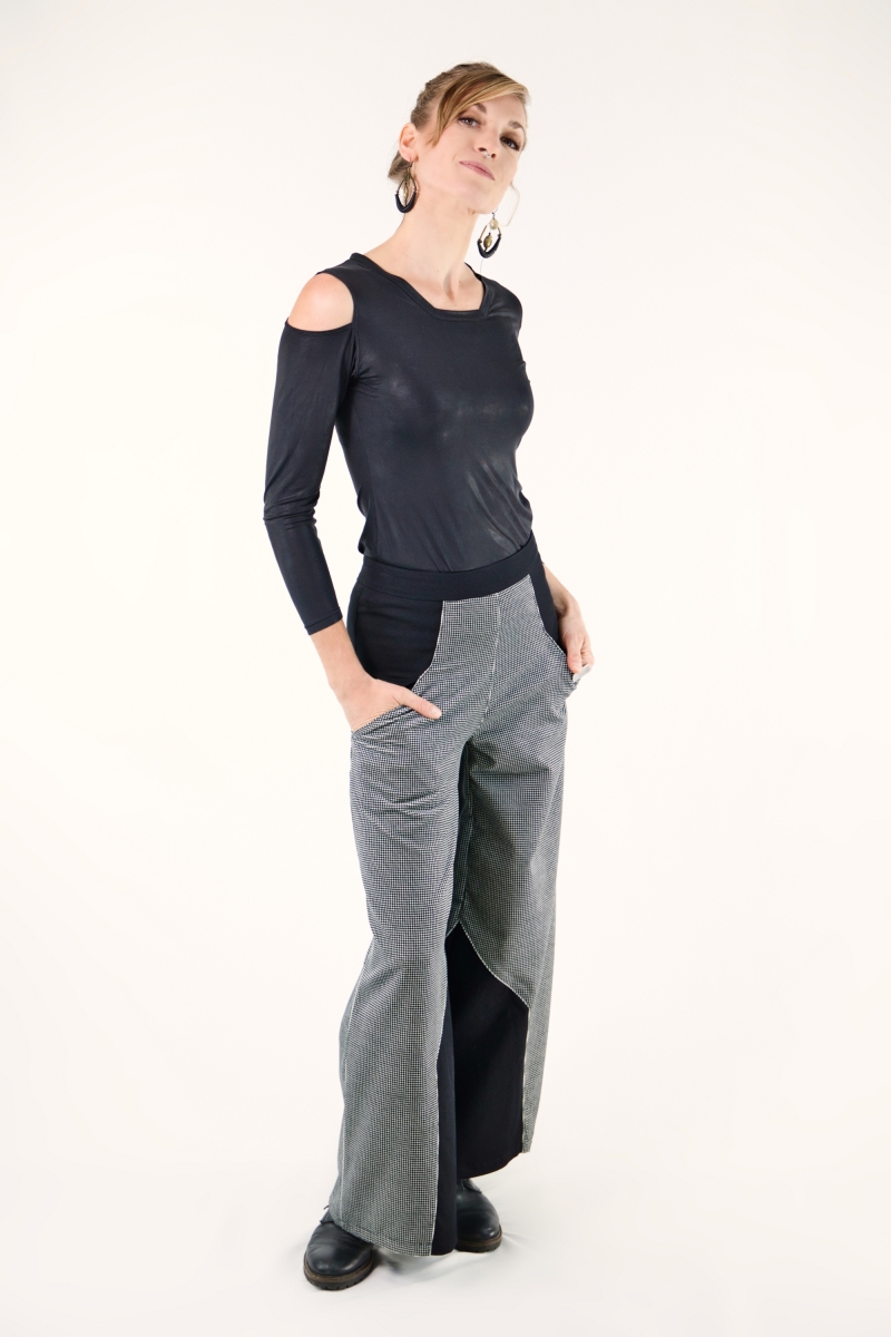 'Avec le pantalon Lomena, j'ai voulu créer un pantalon qui respire la liberté - un tombé fluide ou plus structuré selon la matière, pour incarner l'équilibre entre mouvement et présence. '