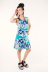Confectionnée en coton satiné, elle séduit par ses motifs ondoyants violet et bleu, évoquant les reflets d'un ciel changeant.