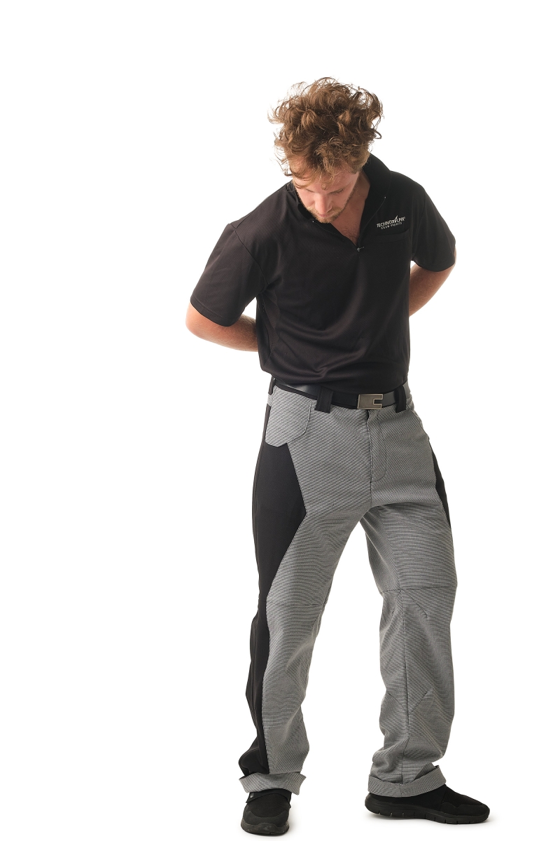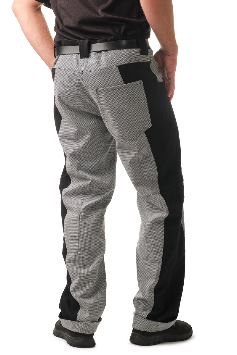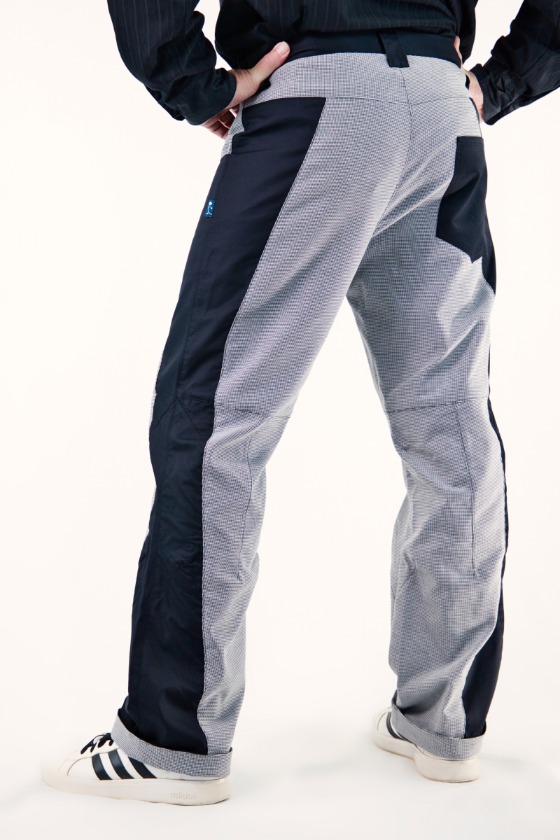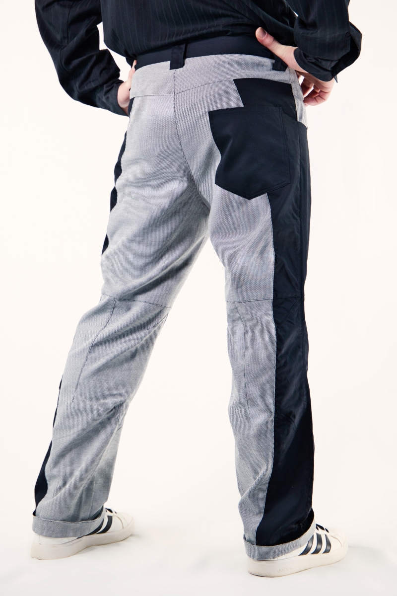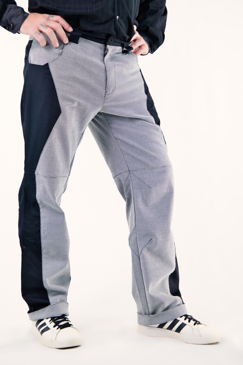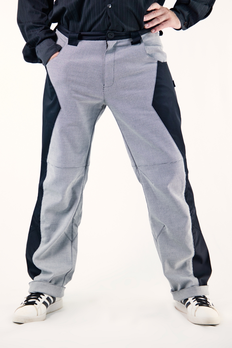 ' J'ai imagine ce pantalon pour ceux qui recherchent à la fois aisance et allure. Son jeu de couleurs apporte du caractère, tout en conservant une ligne épurée et flatteuse. '