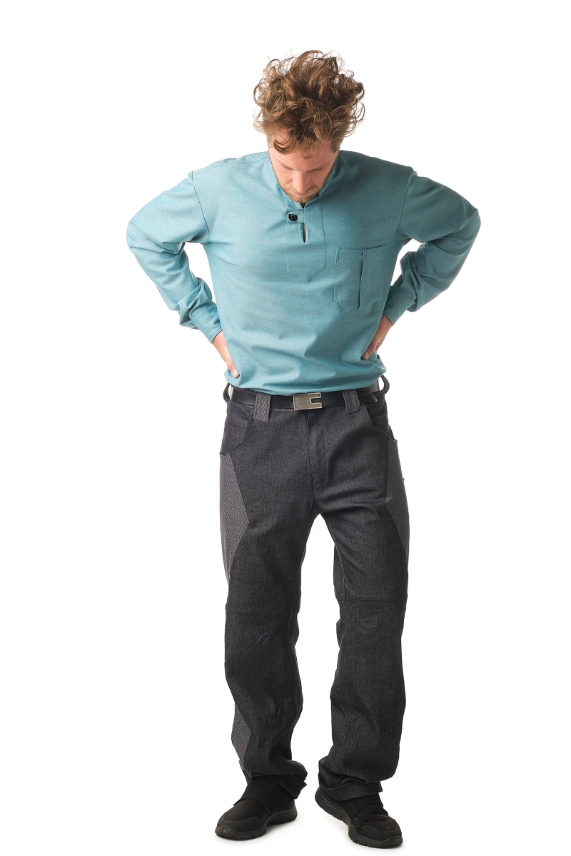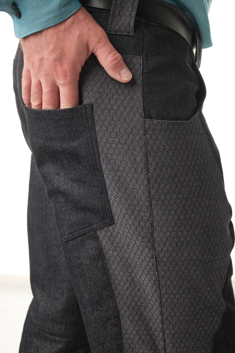 2 poches devant. Fermeture zippée avec un bouton à l'avant. Taille à passants.