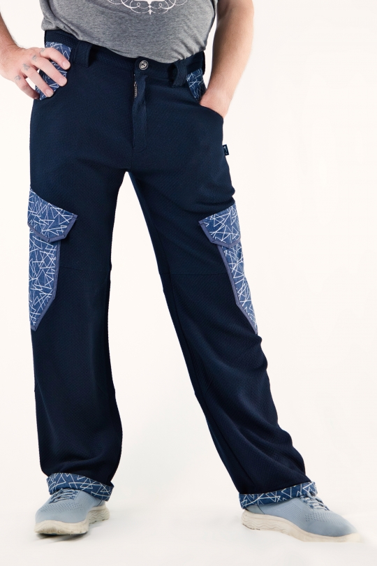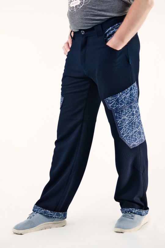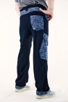 ' J'ai voulu créer un pantalon à la fois confortable et singulier. La sobriété de la couleur unie met en valeur les poches aux motifs inattendus, comme un clin d'oeil au fait-main et à l'audace douce qui caractérise Chilia. '